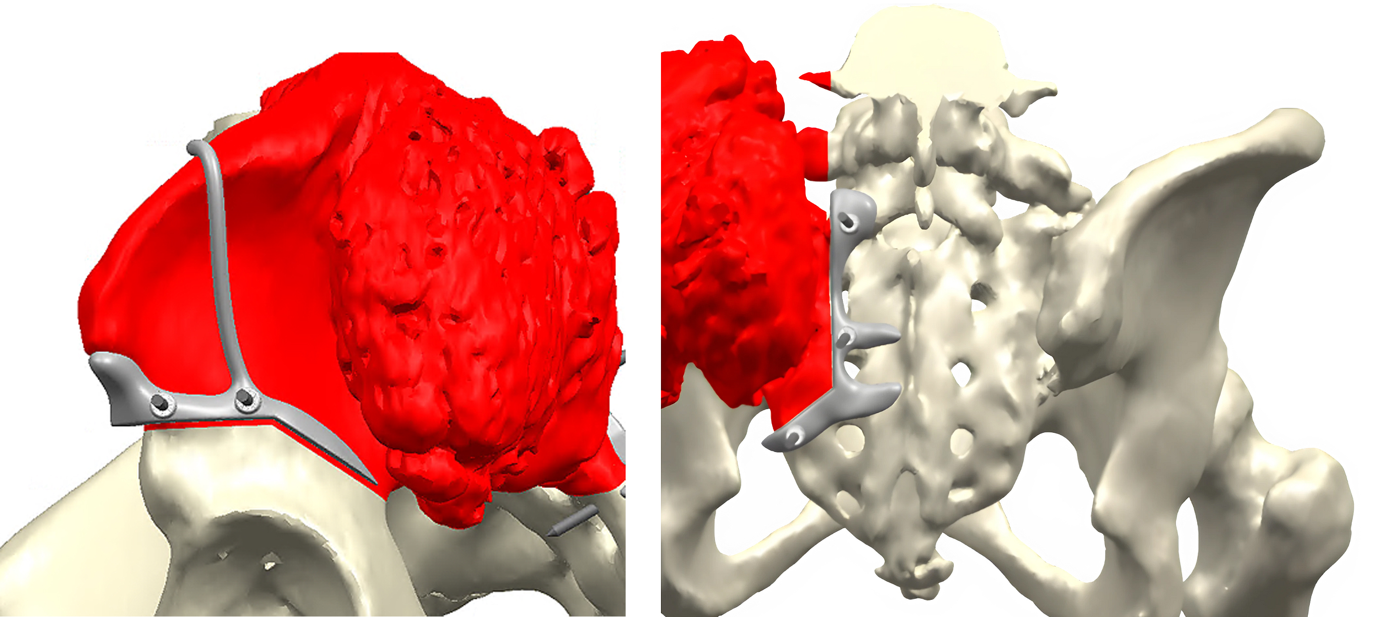 Careful planning, patient-specific guides, and the application of advanced implant technologies resulted in successful reconstruction and early mobilization. Thus, customized sacroiliac joint replacements represent a valuable option in highly complex tumor cases where conventional implants are insufficient. They enable the preservation of anatomy, restoration of stability, and functional recovery.