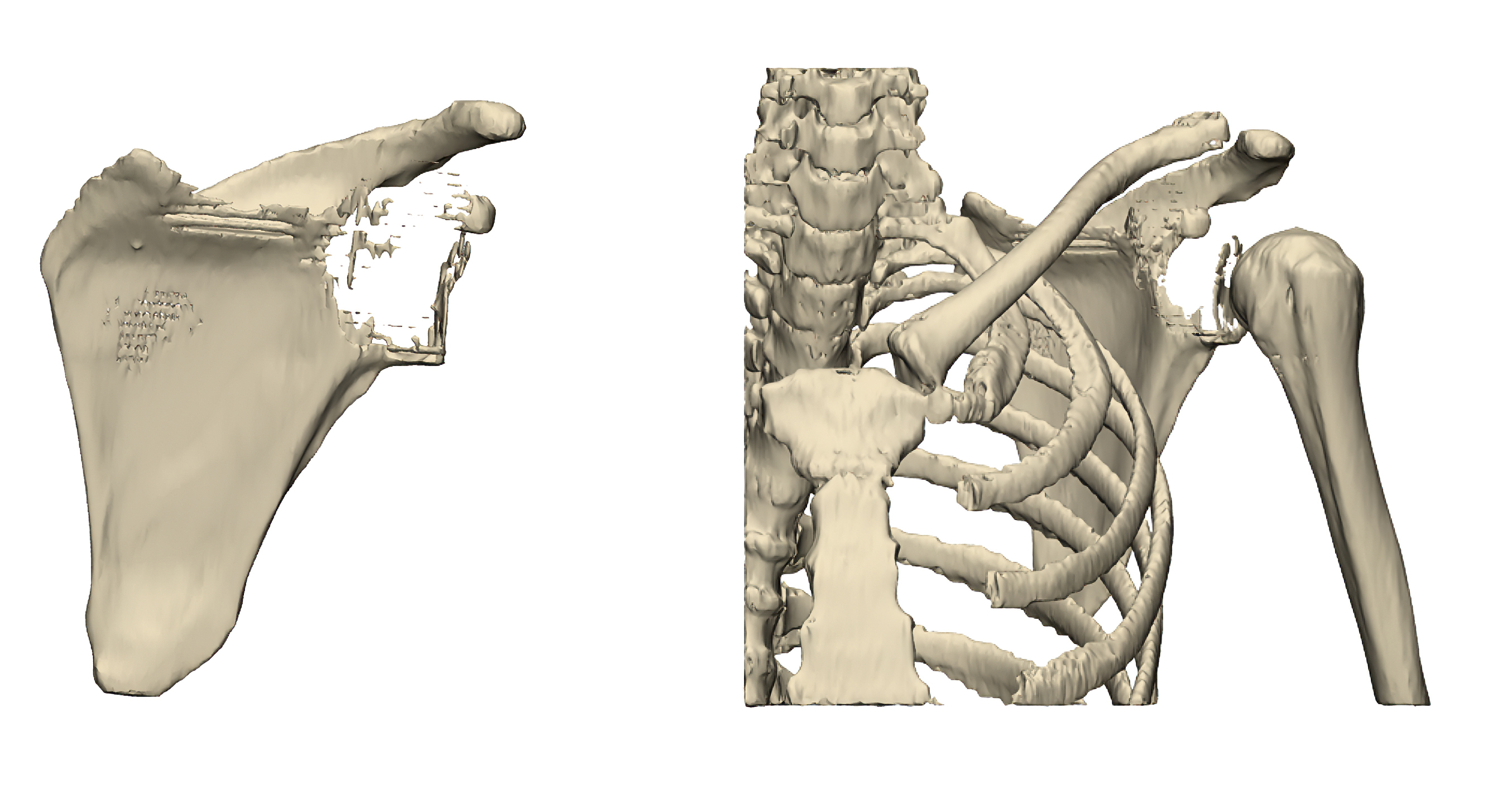Preoperative 3D reconstruction demonstrating extensive tumor involvement of the left scapula.