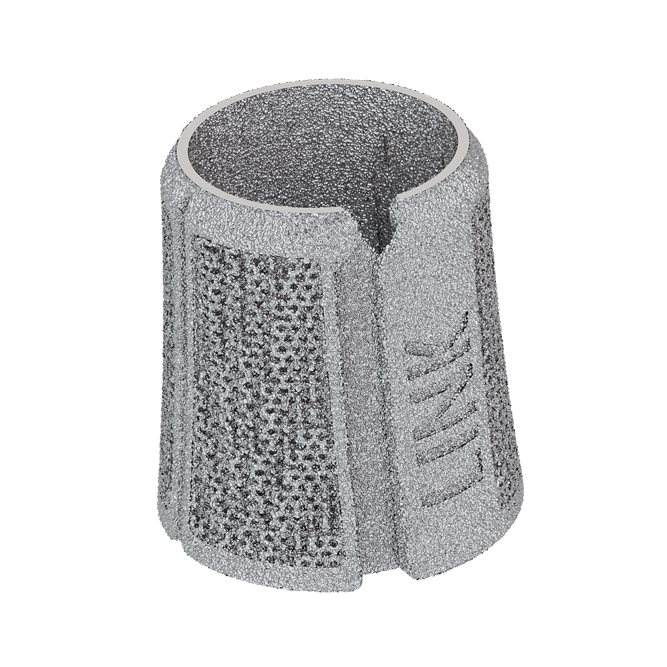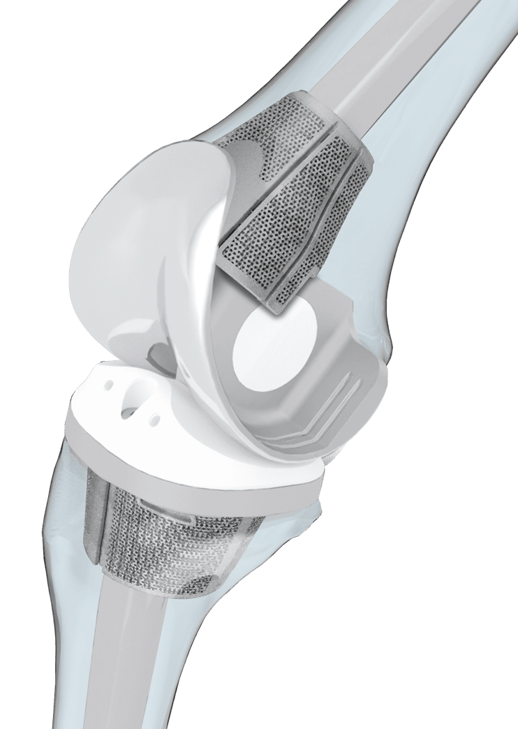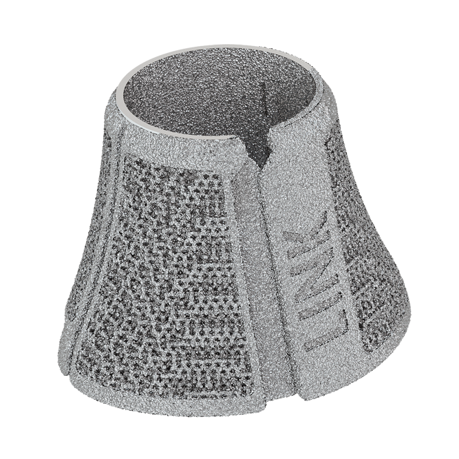 The dynamic TrabecuLink Femoral- and Tibial Cones are an attractive solution for cementless restoration of bone defects10 and to provide additional support for the prosthesis if there is bone loss in the proximal tibia. The combination of the dynamic design5,6 of the cones and the biocompatible material Tilastan– E11,12 is ideal for ensuring stable, long-lasting fixation and successful bone regeneration.