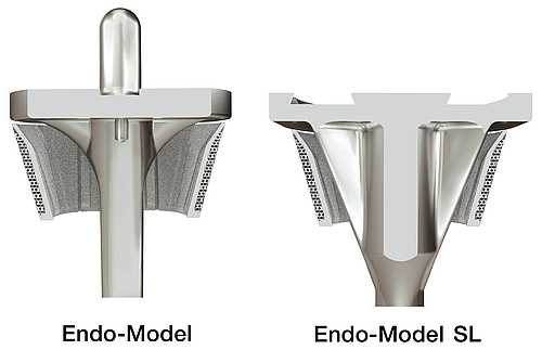 The 3-dimensional TrabecuLink structure, with its pore size, porosity and structure depth, also provides an excellent basis for promoting osteoconduction and microvascularization, taking into account the requirements for the structure-covering protein layer (fibronectin - vitronectin - fibrinogen).1,2 TrabecuLink Cones can be used in combination with the long-established LINK Endo-Model knee family in a wide range of sizes and versions. The choice of sizes corresponds to the dimensions of the hinged