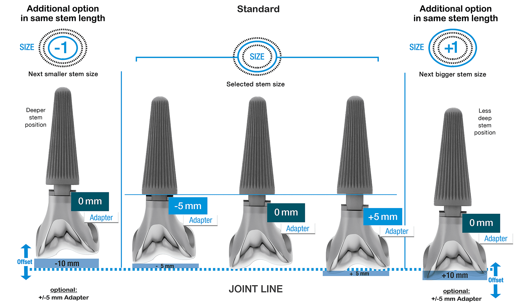 - Intraoperative freedom of choice between options, with 3 stem lengths each.