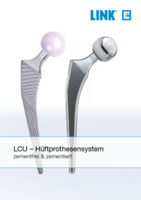 Das LCU Hüftprothesensystem umfasst einen zementierten und einen zementfreien Hüftschaft. Die zementfreie Version ist mit HX Beschichtung oder einer mikroporösen PoroLink-Oberfläche erhältlich. Alle Versionen folgen dem Konzept eines Geradschaftes mit abgeschrägter lateraler Schulter. Das Profil ist gerade mit rechteckigem Querschnitt.