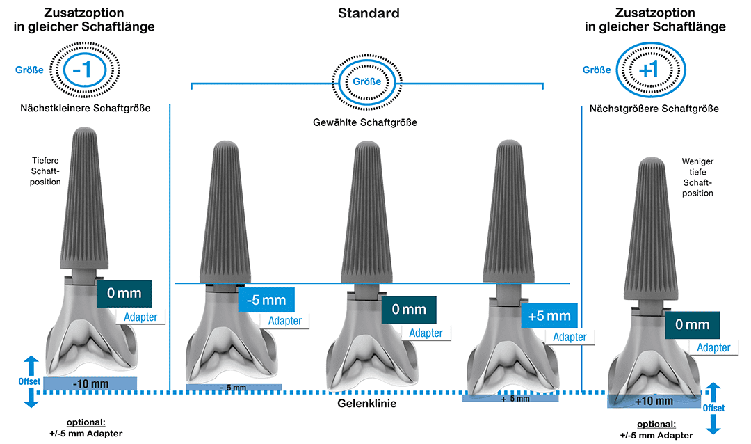 - Intraoperative Flexibilität mit je drei Schaftlängen