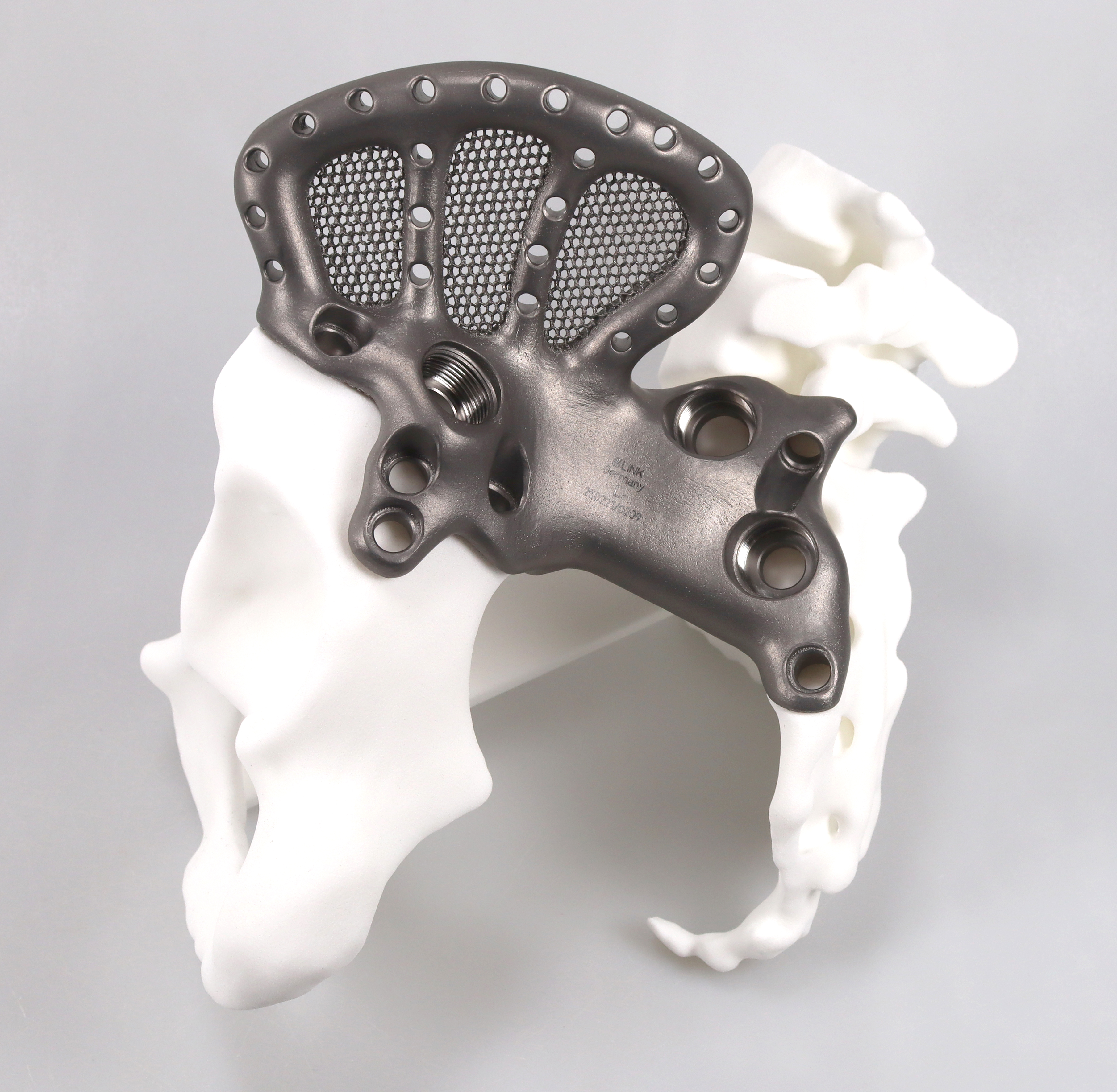 sacral structures, and the need for stable fixation. Custom-made implants, enhanced with TrabecuLink® surfaces for