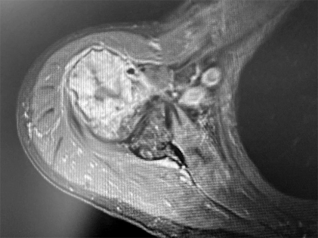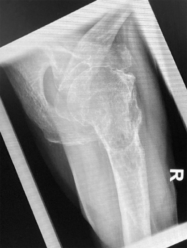 - 73 year old male with bone tumor in the proximal humerus right side