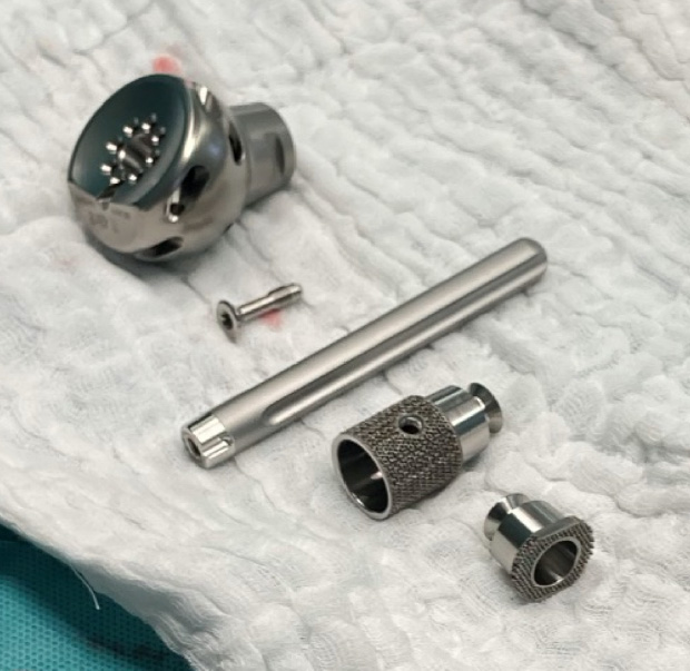 - Assembly of MEGA C Upper Limb System components, consisting of MEGA C UL Proximal Body Size 42, 20 mm Humeral Segment wit TrabecuLink surface and Cemented Stem, Dia. 11mm, 90 mm length, Adapters and Fixation Screws