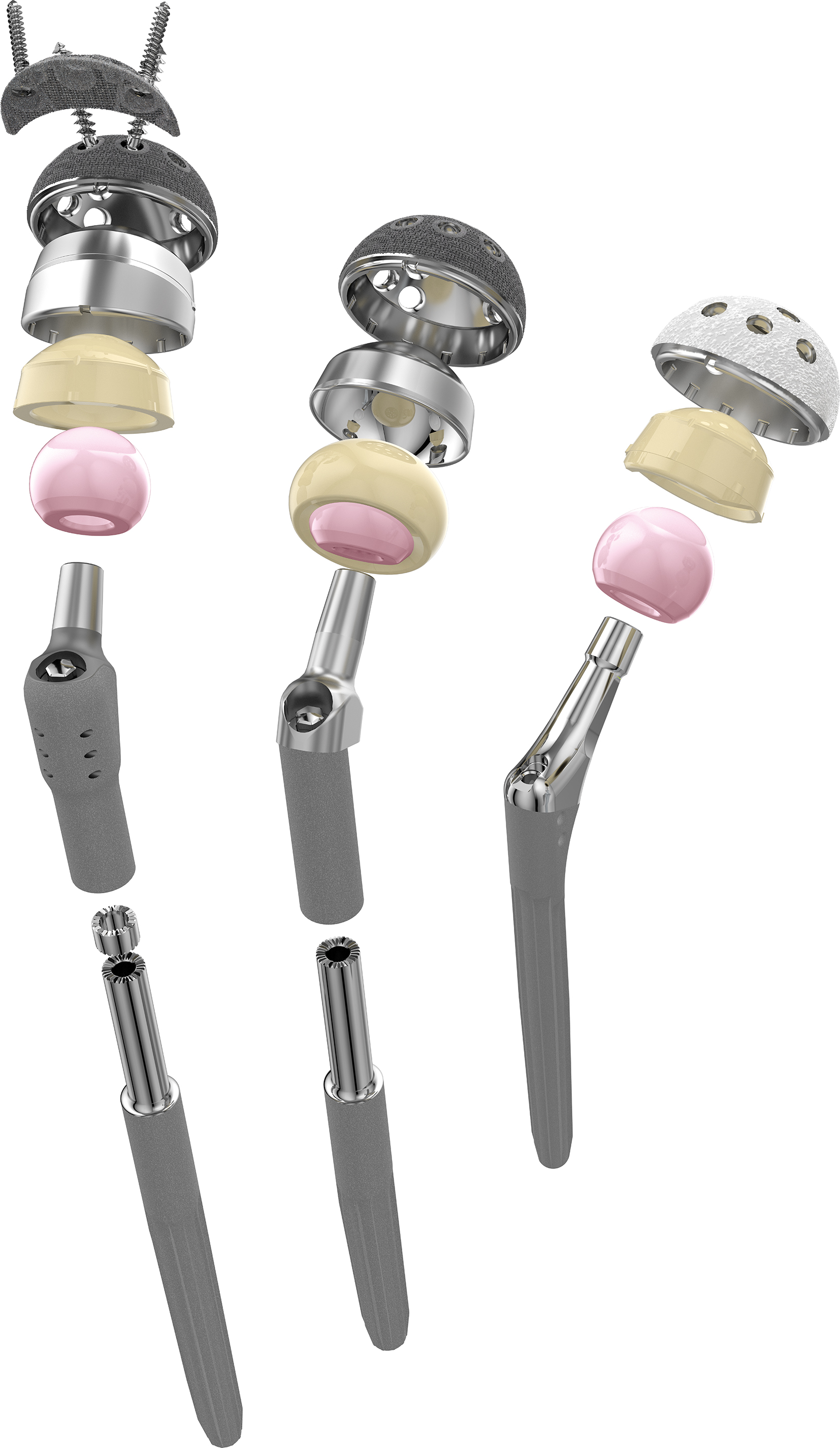 The acetabular cups are characterized by a secure fixation of the polyethylene inserts by a snap-lock mechanism as well as by conical coupling and antirotation tabs.