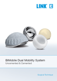 The Link BiMobile Dual Mobility System is available in two versions, either cemented or cementless. The metal casings in both versions are fabricated from biocompatible, sturdy EndoDur CoCrMo material.4 The inner surface is highly polished in order to keep abrasion to a minimum.