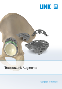 The TrabecuLink Augments offer an attractive solution in cases of segmental acetabular defects as a prosthetic alternative to structural allograft. The biocompatible material Tilastan-E1 and the TrabecuLink structure offer an excellent prerequisite for a stable and permanent treatment of bone defects.